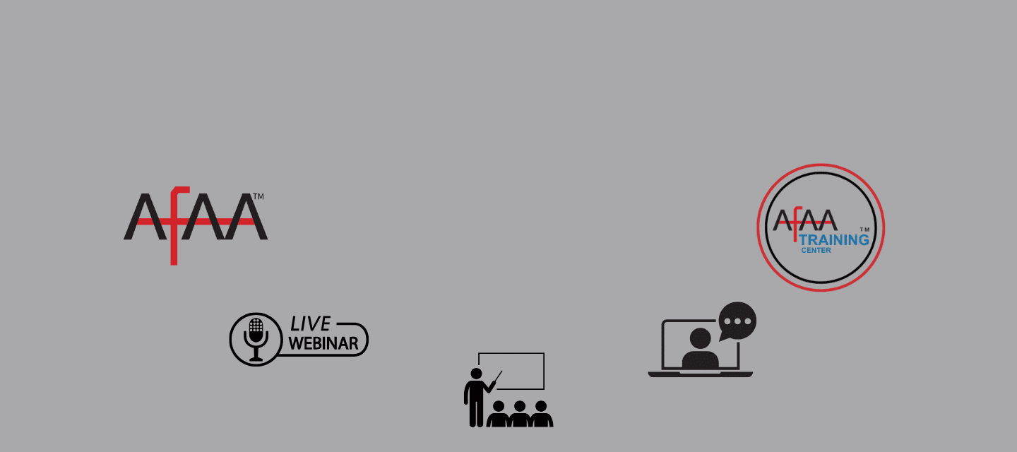 AFAA can provide live online instructor-led training to your company or organization. While these classes are designed as full-day sessions, attending virtually is best achieved by splitting these classes into two half-days per class. Offering the class in two half-days also helps to accommodate busy schedules and time zones. This training delivery provides the same course materials and expertise as the in-person training, without the loss of travel time and travel costs. If you prefer in-person training, that option is still available as well! Check out our course catalog below!
